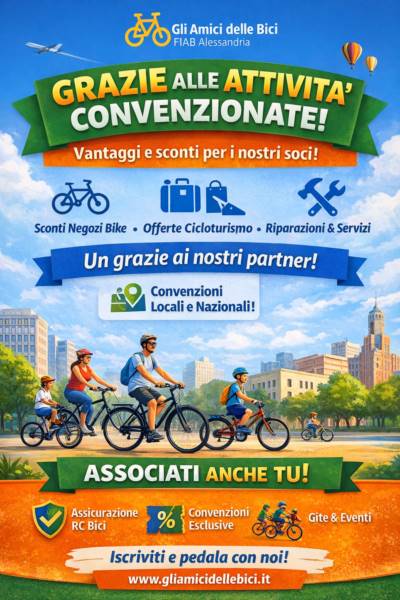 Un enorme grazie di cuore a tutte le realtà che hanno deciso di sostenere la nostra associazione e di offrire vantaggi esclusivi ai soci Gli Amici delle Bici – FIAB Alessandria! 🎉🙏