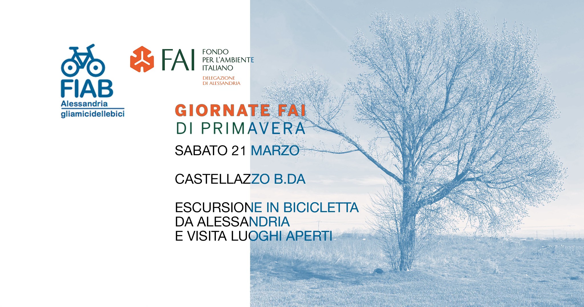 FIAB Alessandria gliamicidellebici in collaborazione con FAI Alessandria, organizza per sabato 21 marzo 2026 una gita in bicicletta in occasione delle Giornate FAI di Primavera.